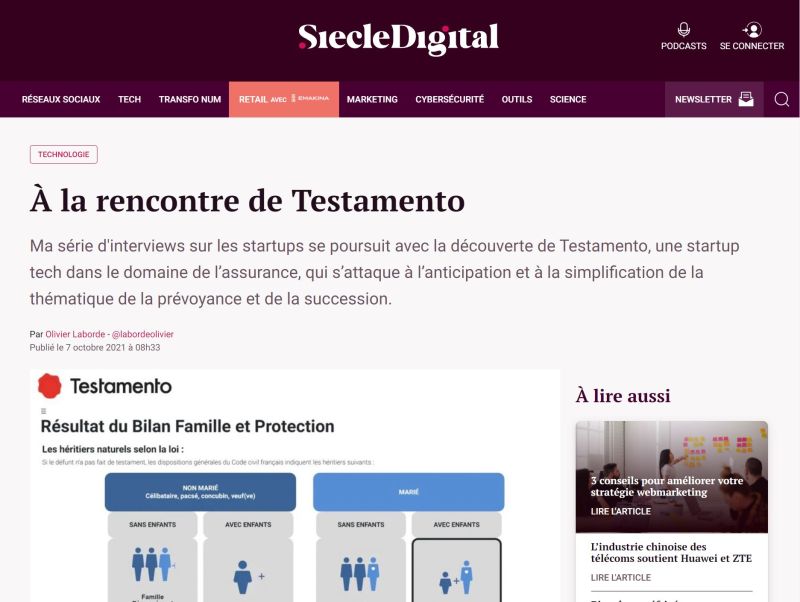 Dans ce numéro d’octobre 2021 on vous parle du webinaire organisé avec Hardis Group, d’une interview publiée dans le Siècle Digital et de la rentrée bien remplie de Testamento !
